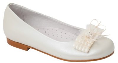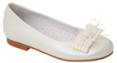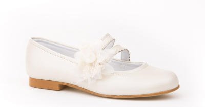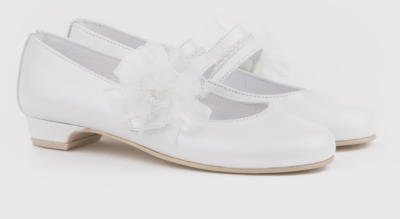 Zapatos de comunión Niña de piel y forro de piel.Colores: Nacarado Beig y Blanco.Tallas: 30/41.Adorno: Quita y ponFabricado en España"