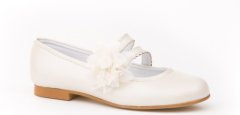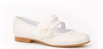 Zapatos de Comunión Chica de piel y forro de piel.Colores: Nacardo Beig y Blanco. Tallas: 30/41Adorno: Quita y ponFabricado en España